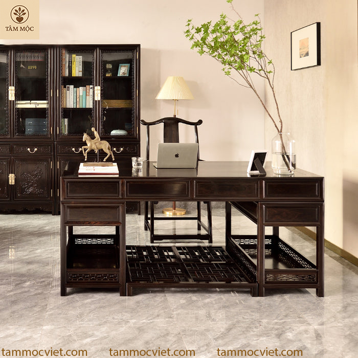 Không chỉ đơn thuần là một chiếc bàn làm việc, sản phẩm còn là biểu tượng của sự thành đạt, trí tuệ và gu thẩm mỹ tinh tế. Mỗi chi tiết chạm khắc trên bàn làm việc gỗ trắc cao cấp 2 tầng đều được thực hiện thủ công bởi nghệ nhân lành nghề, mang lại giá trị độc bản mà không dòng sản phẩm công nghiệp nào sánh kịp.