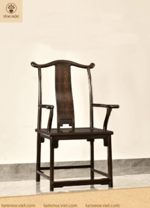 Sản phẩm đi kèm ghế tai quan gỗ trắc cao cấp, mẫu ghế từng xuất hiện trong nội thất hoàng cung xưa. Với phần tựa lưng cong hình vòm cung và tay vịn uốn mềm mại, ghế tai quan giúp định hình tư thế ngồi chuẩn, thoải mái cho người sử dụng suốt thời gian dài làm việc.