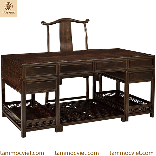 BÀN LÀM VIỆC GỖ TRẮC CAO CẤP 2 TẦNG KẾT HỢP GHẾ TAI QUAN – ĐỈNH CAO PHONG CÁCH QUÝ TỘC TRUYỀN THỐNG