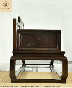 - Hình ảnh hoa sen được nghệ nhân chạm tay tỉ mỉ trên phần vách tựa và tay ghế – từng đường nét mềm mại, sống động, không rập khuôn máy móc.