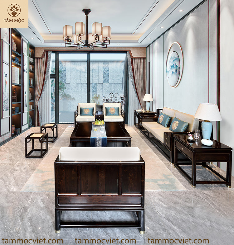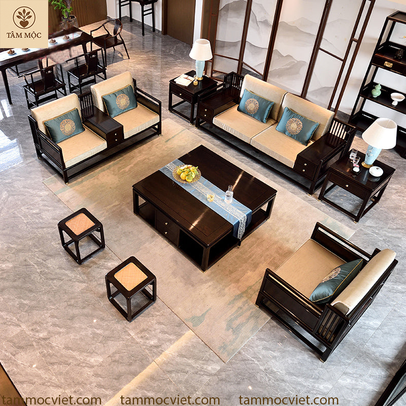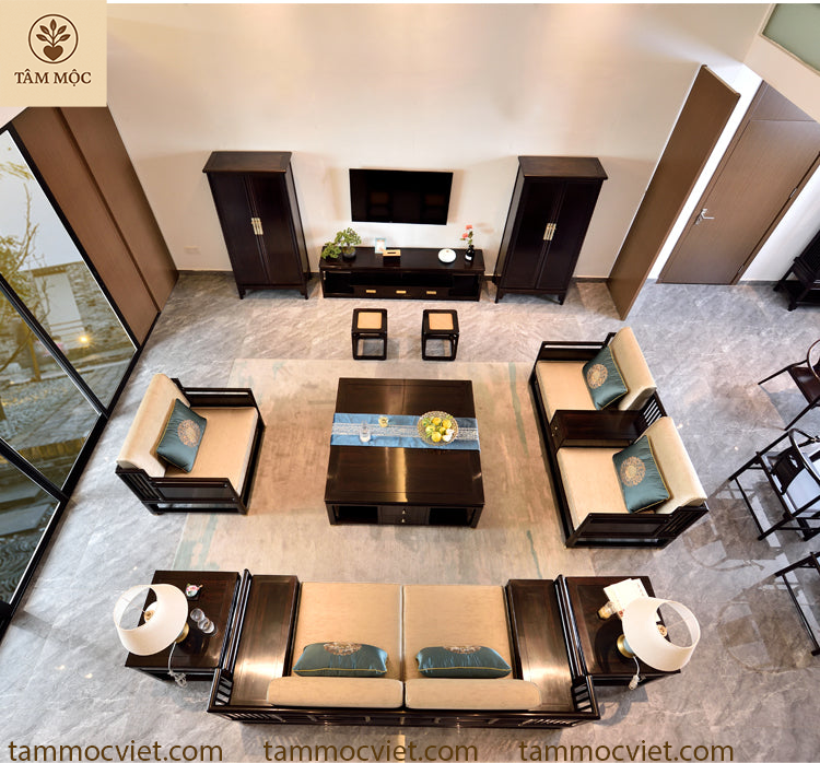 Bộ sofa cao cấp vách lan gỗ gụ là hiện thân của sự kết hợp giữa chất liệu quý truyền thống và ngôn ngữ thiết kế đương đại tối giản. Lấy cảm hứng từ tinh thần thiền tĩnh của kiến trúc Á Đông, mẫu sofa này nổi bật với thiết kế vách lan nhẹ nhàng, thoáng khí – giúp không gian phòng khách trở nên rộng mở, thư thái nhưng vẫn trang trọng.