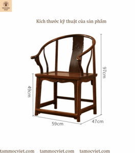 Kích thước ghế Minh Trọc gỗ trắc được thiết kế chuẩn chỉnh giúp người ngồi giữ được tư thế thoải mái, sang trọng và lịch sự.