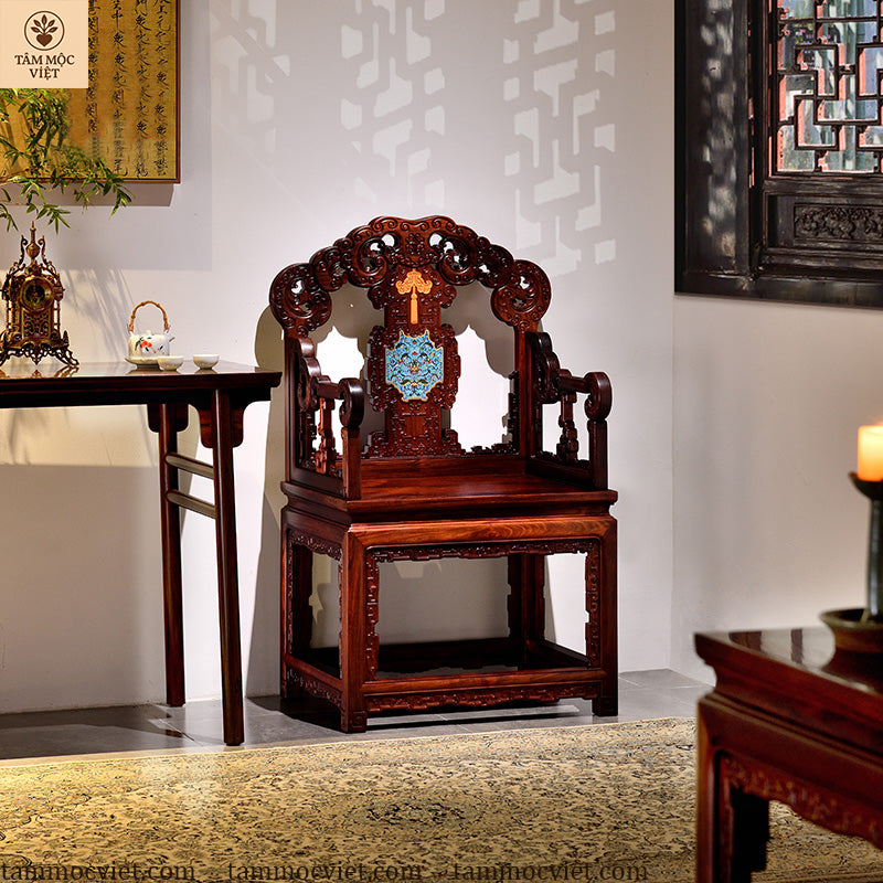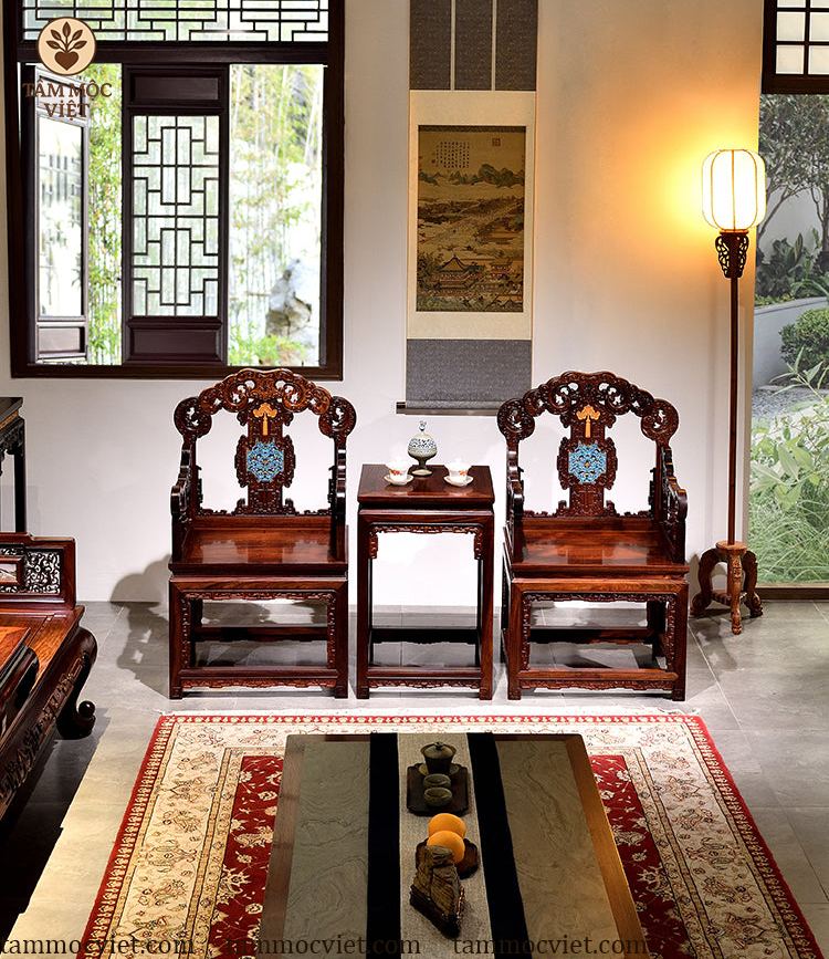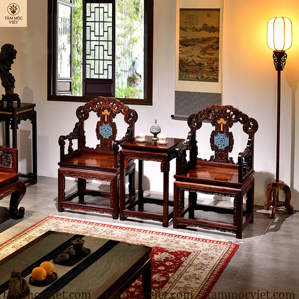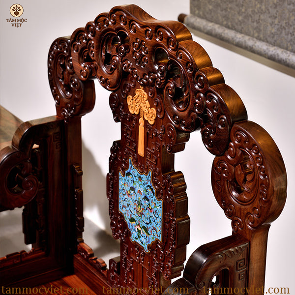 Nếu bạn đang tìm kiếm một chiếc ghế vừa sang trọng, vừa mang giá trị phong thủy, thì ghế Ngũ Phúc gỗ hương khảm pháp lam chính là lựa chọn lý tưởng nhất.