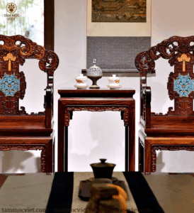 Ý nghĩa phong thủy của ghế Ngũ Phúc gỗ hương khảm pháp lam