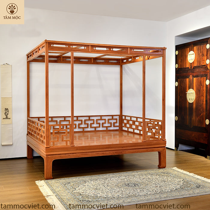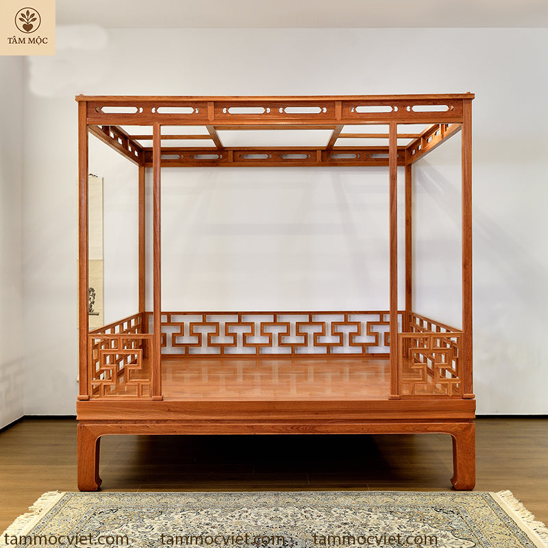Giường ngủ chữ Vạn gỗ hương – Vẻ đẹp truyền thống hội tụ tinh hoa thủ công