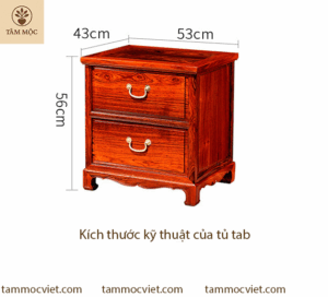 - Kích thước tủ đầu giường: Rộng 53cm x Sâu 43cm x Cao 56cm