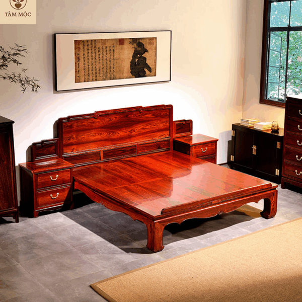 Giường Ngủ Gỗ Trắc Đỏ Cao Cấp – Vẻ Đẹp Vượt Thời Gian Cho Không Gian Sống Đẳng Cấp