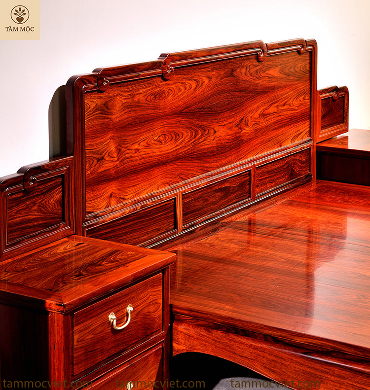 Bạn có thể kết hợp giường với các sản phẩm tủ quần áo gỗ trắc, bàn phấn gỗ trắc, tủ đầu giường đồng bộ, tạo nên một không gian phòng ngủ tinh tế, sang trọng và nhất quán về màu sắc, phong cách.