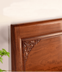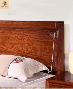 Điểm nhấn của sản phẩm là các họa tiết hoa văn tứ quý được chạm khắc thủ công bằng tay ở phần đầu và đuôi giường. Những chi tiết này không chỉ mang ý nghĩa phong thủy (Tùng – Cúc – Trúc – Mai), mà còn thể hiện sự tài hoa và tâm huyết của người thợ lành nghề tại Tâm Mộc Việt.