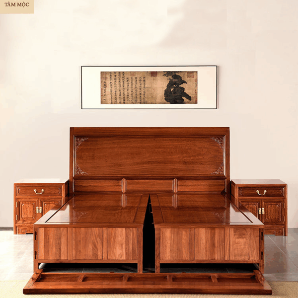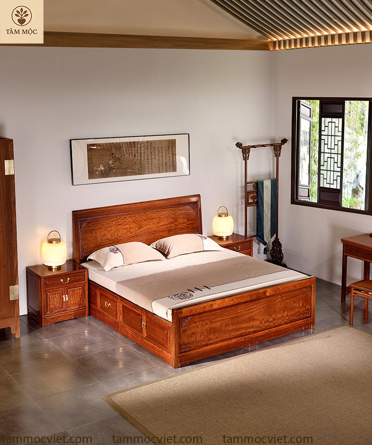 Hãy để giường ngủ gỗ hương cao cấp từ Tâm Mộc Việt mang đến không gian nghỉ ngơi sang trọng, ấm cúng và mang đậm dấu ấn văn hóa truyền thống cho tổ ấm của bạn.