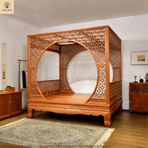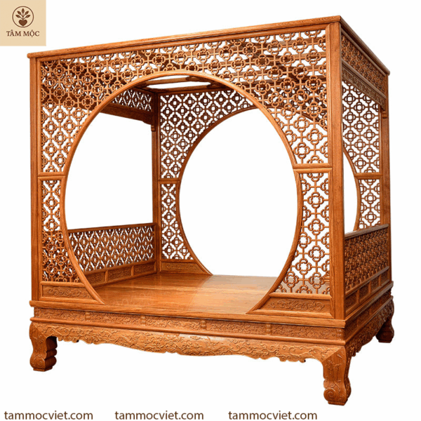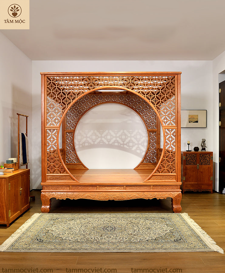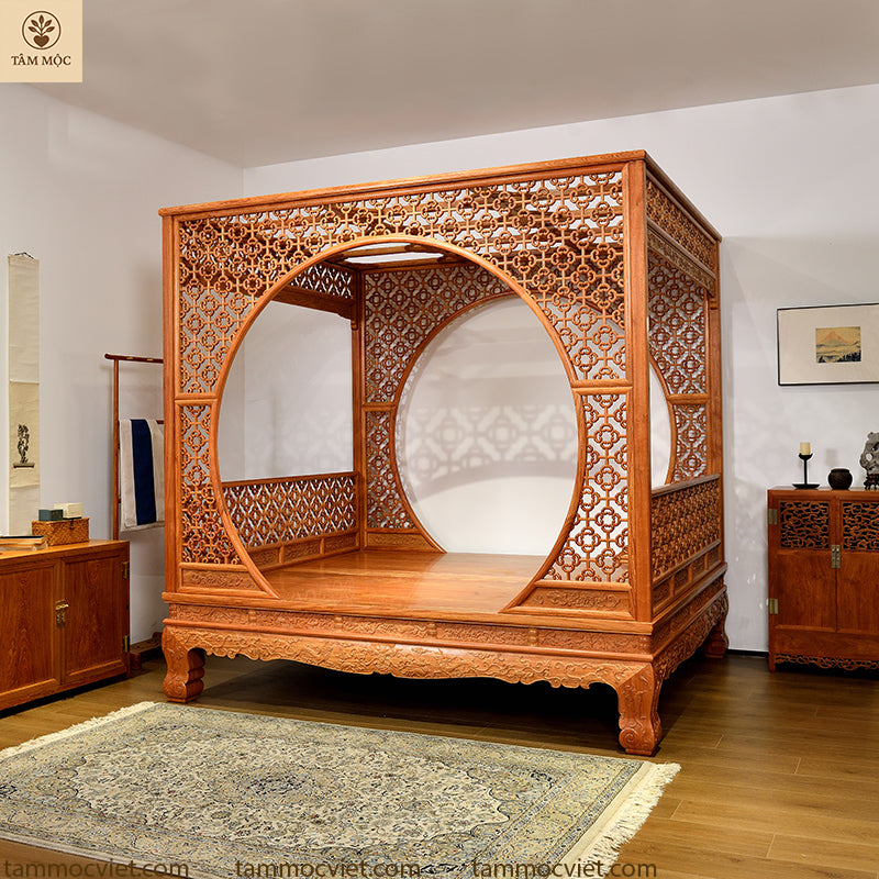 Vẻ đẹp vượt thời gian từ mẫu giường Nguyệt Môn gỗ hương đỏ cao cấp