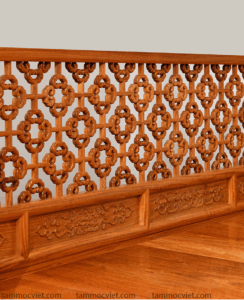 Chân giường bo vuông uốn lượn, đục rồng mây – cúc mai mềm mại mà vững chãi