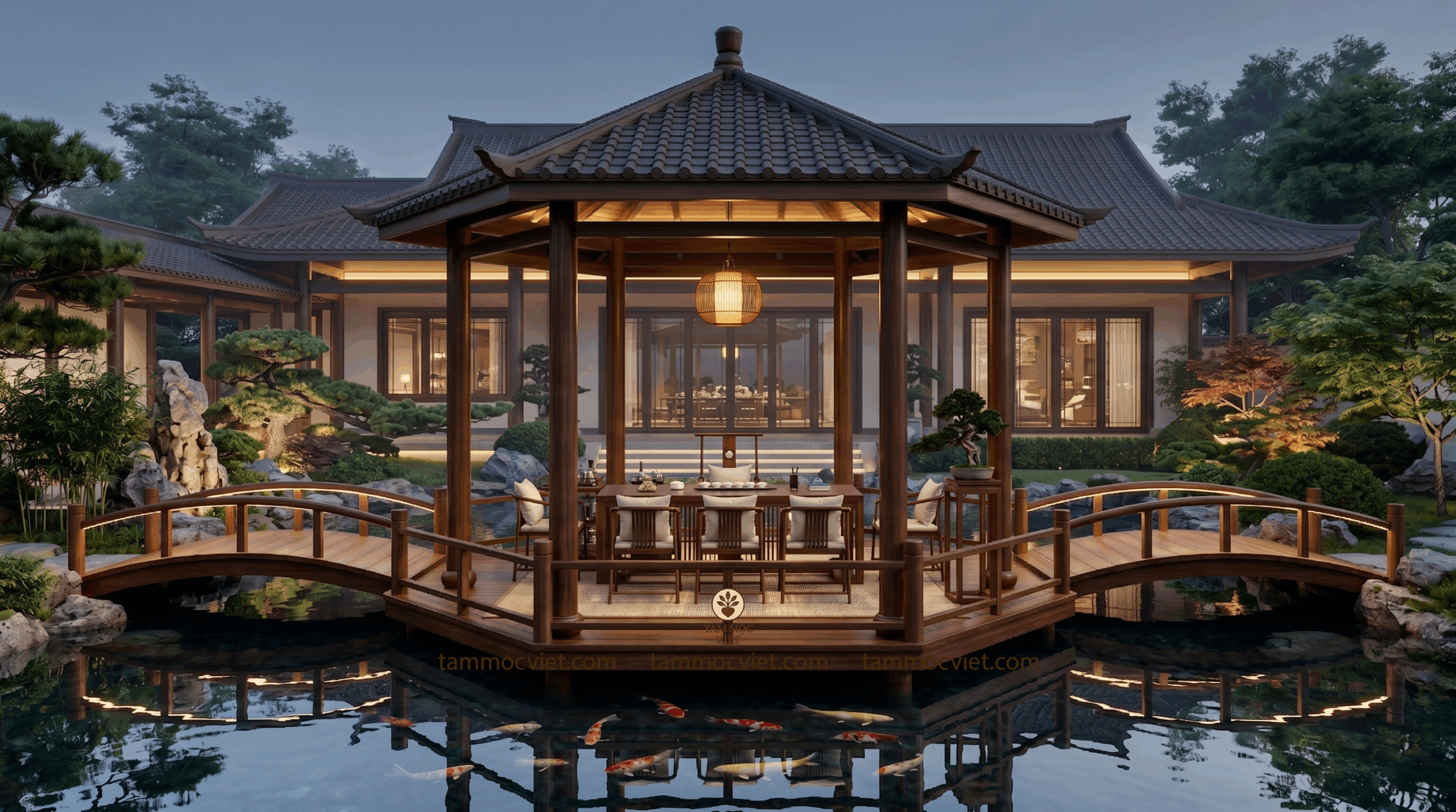 #TamMocViet #LauTraThatGoCaoCap #LauTraThat #TraThatSanVuon #NoiThatGoMyNghe #NoiThatThuCong #PhongTraDep #KhongGianSongCoHon #KienTrucADong #HoCaKoi