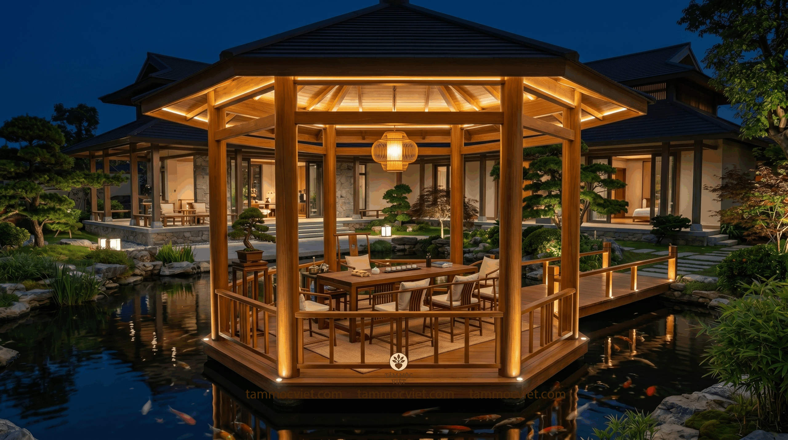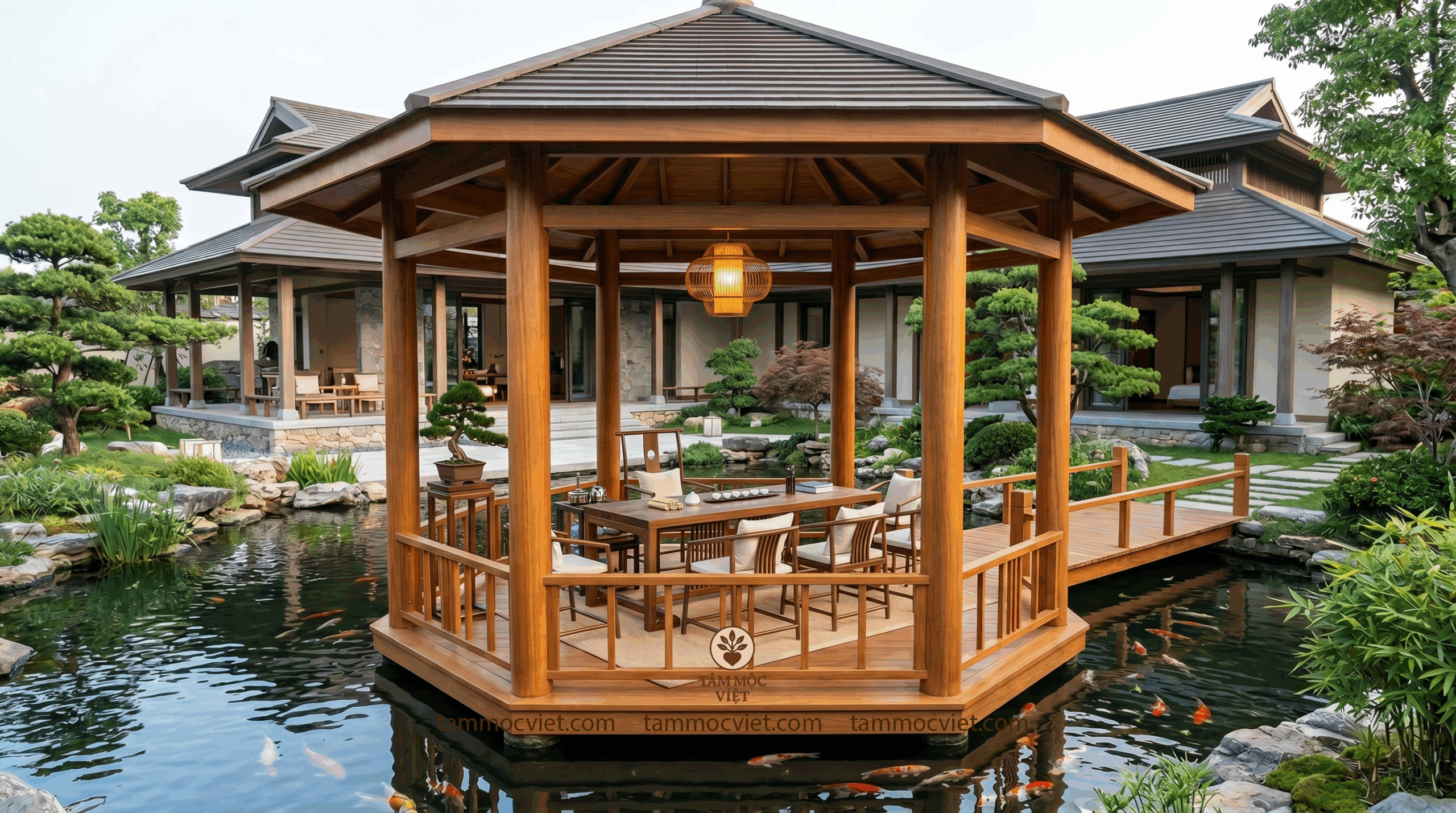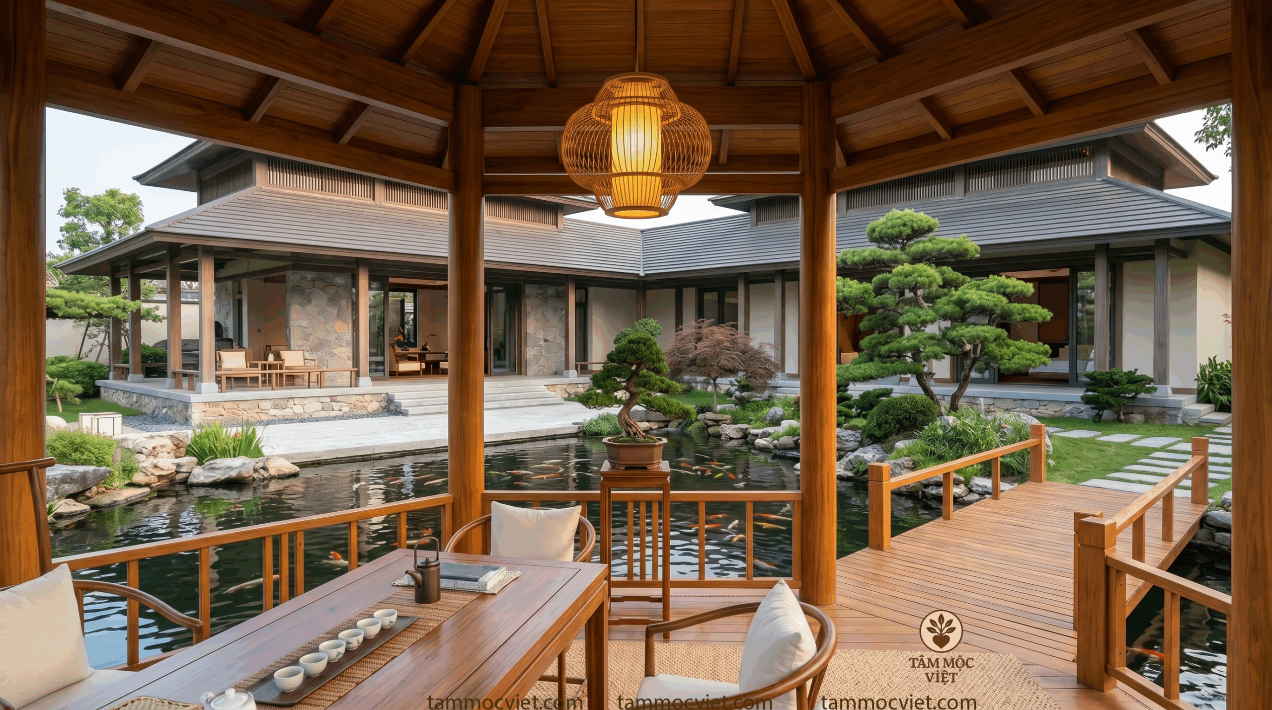 #TamMocViet #LauTraThatNgoaiTroi #TraThatDep #TraThatHoCaKoi #BietThuSanVuon #KhongGianTraThat #NoiThatGo #KhongGianSongDep #ThietKeTraThat #HoCaKoi