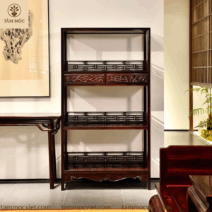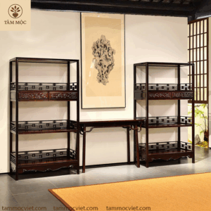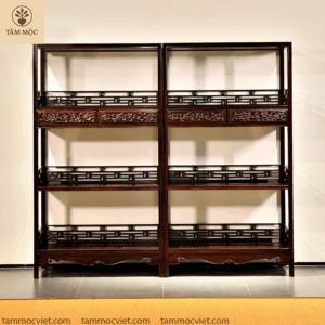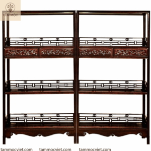 Tủ bày đồ gỗ trắc chạm hoa văn rồng là sự kết hợp hoàn hảo giữa chất liệu quý hiếm và nghệ thuật chạm khắc truyền thống. Với thiết kế thanh thoát, nhiều tầng bố trí thông minh và hoa văn rồng chạm tay thủ công, sản phẩm không chỉ là món nội thất tiện dụng mà còn là tác phẩm nghệ thuật trong không gian sống.