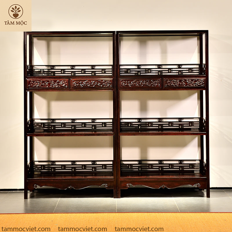 Tủ bày đồ gỗ trắc chạm hoa văn rồng | Nội thất cổ điển cao cấp