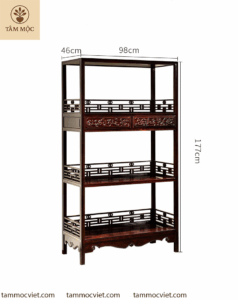 | Kết cấu | 3 tầng, 4 hộc kéo, lan can chắn đồ chạm thủ công |