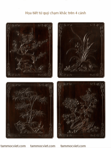 Chạm khắc tứ quý – Mai, lan, cúc, trúc mang ý nghĩa cát tường